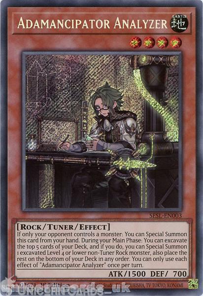 - SESL-EN003 Adamancipator Analyzer Secret Rare 1st Edition Mint YuGiOh Card