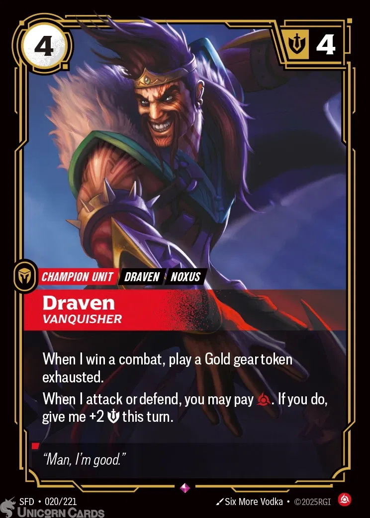 SFD-020 Draven - Vanquisher : Rare Foil Riftbound TCG Card : Spiritforged