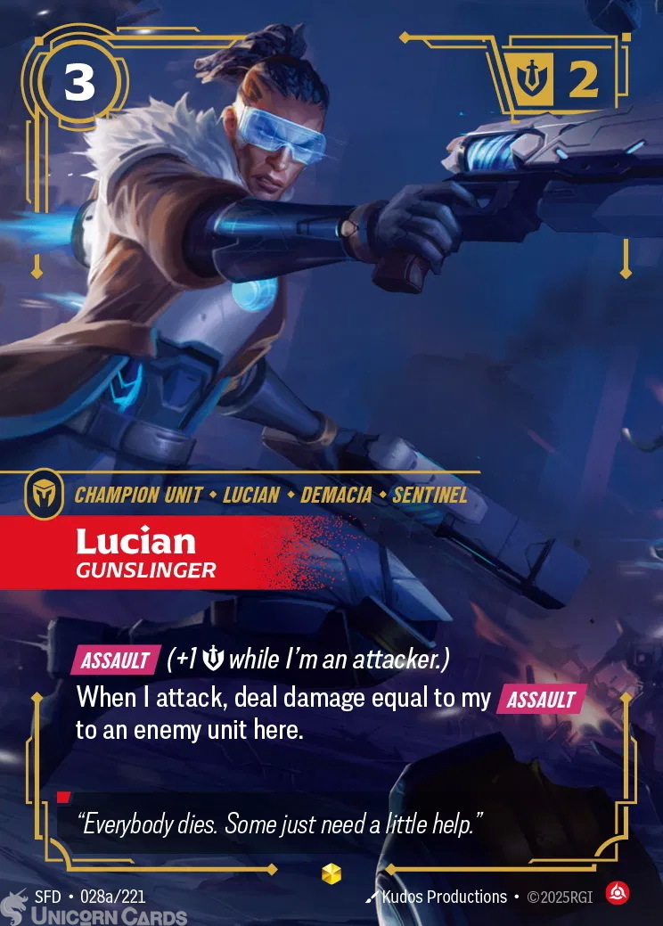SFD-028a Lucian - Gunslinger : Showcase Alternative Art Foil Riftbound TCG Card : Spiritforged