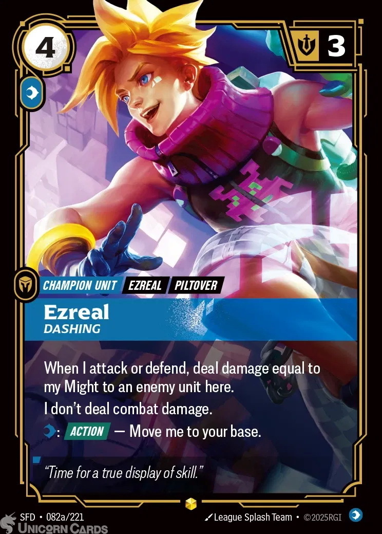 SFD-082a Ezreal - Dashing : Showcase Alternative Art Foil Riftbound TCG Card : Spiritforged