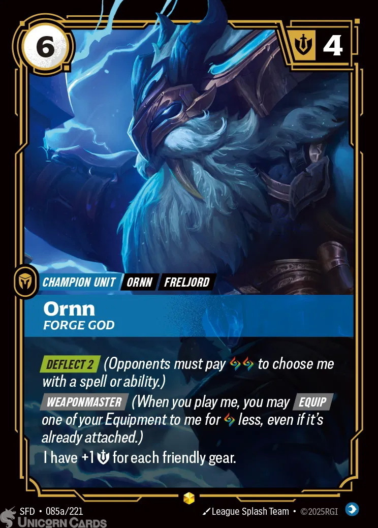 SFD-085a Ornn - Forge God : Showcase Alternative Art Foil Riftbound TCG Card : Spiritforged