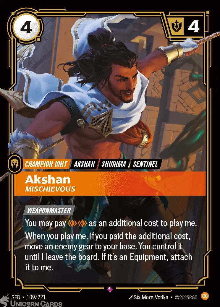 SFD-109 Akshan - Mischievous : Rare Foil Riftbound TCG Card : Spiritforged
