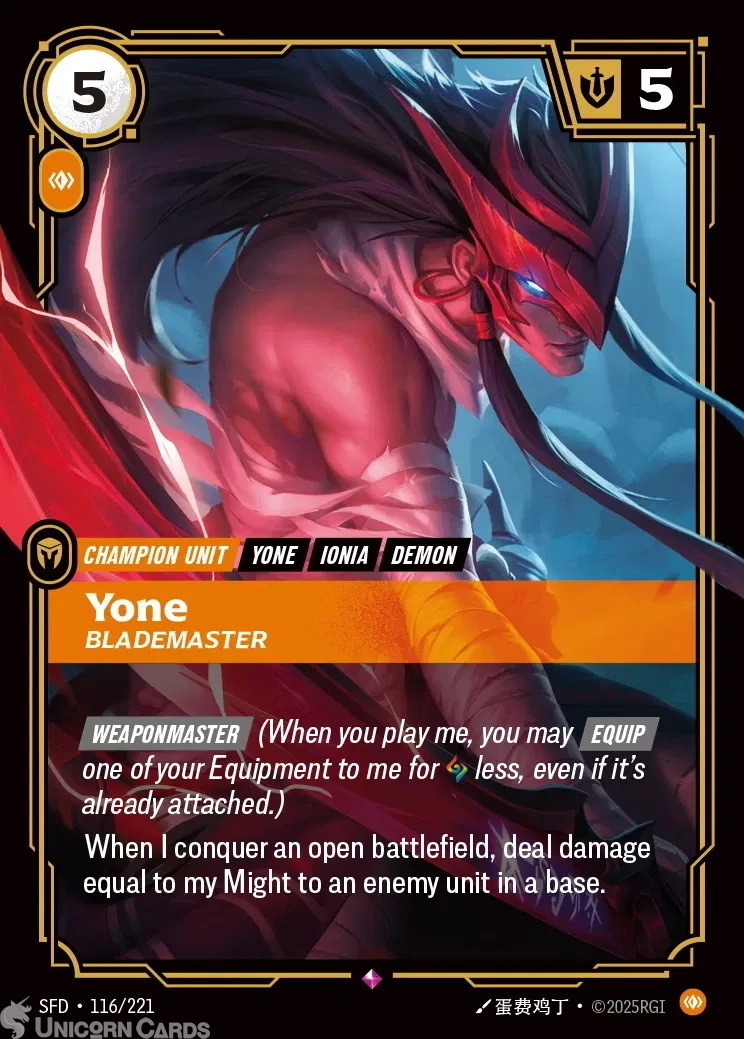 SFD-116 Yone - Blademaster : Rare Foil Riftbound TCG Card : Spiritforged