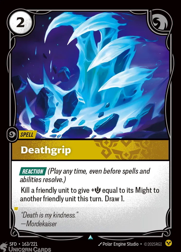 SFD-163 Deathgrip : Uncommon Foil Riftbound TCG Card : Spiritforged