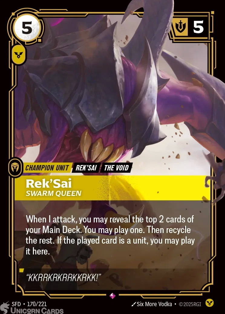SFD-170 Rek'Sai - Swarm Queen : Rare Foil Riftbound TCG Card : Spiritforged