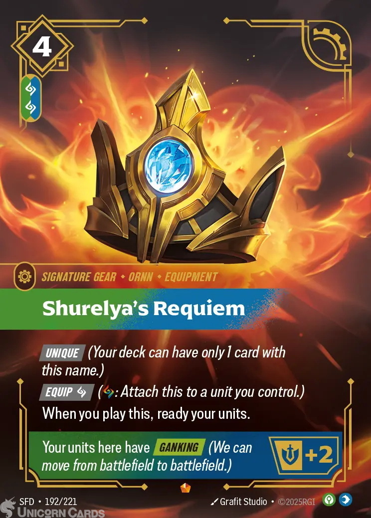 SFD-192 Shurelya's Requiem : Epic Foil Riftbound TCG Card : Spiritforged