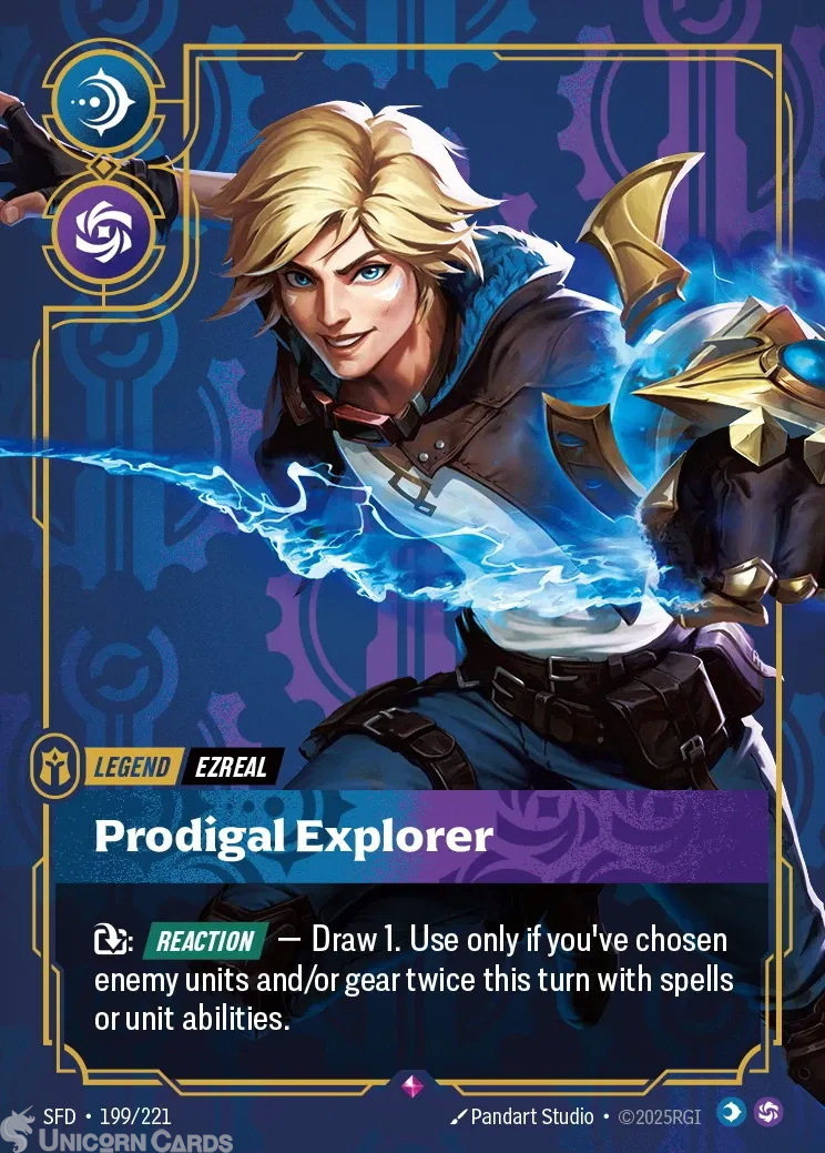 SFD-199 Ezreal - Prodigal Explorer : Rare Foil Riftbound TCG Card : Spiritforged