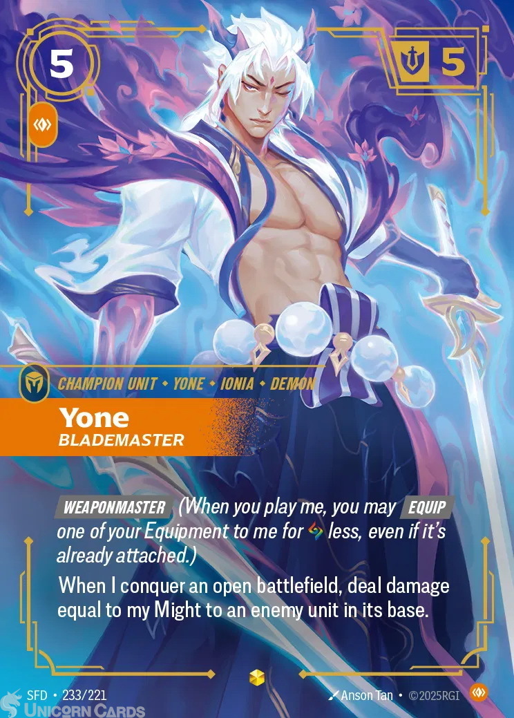 SFD-233 Yone - Blademaster (Overnumbered) : Showcase Foil Riftbound TCG Card : Spiritforged