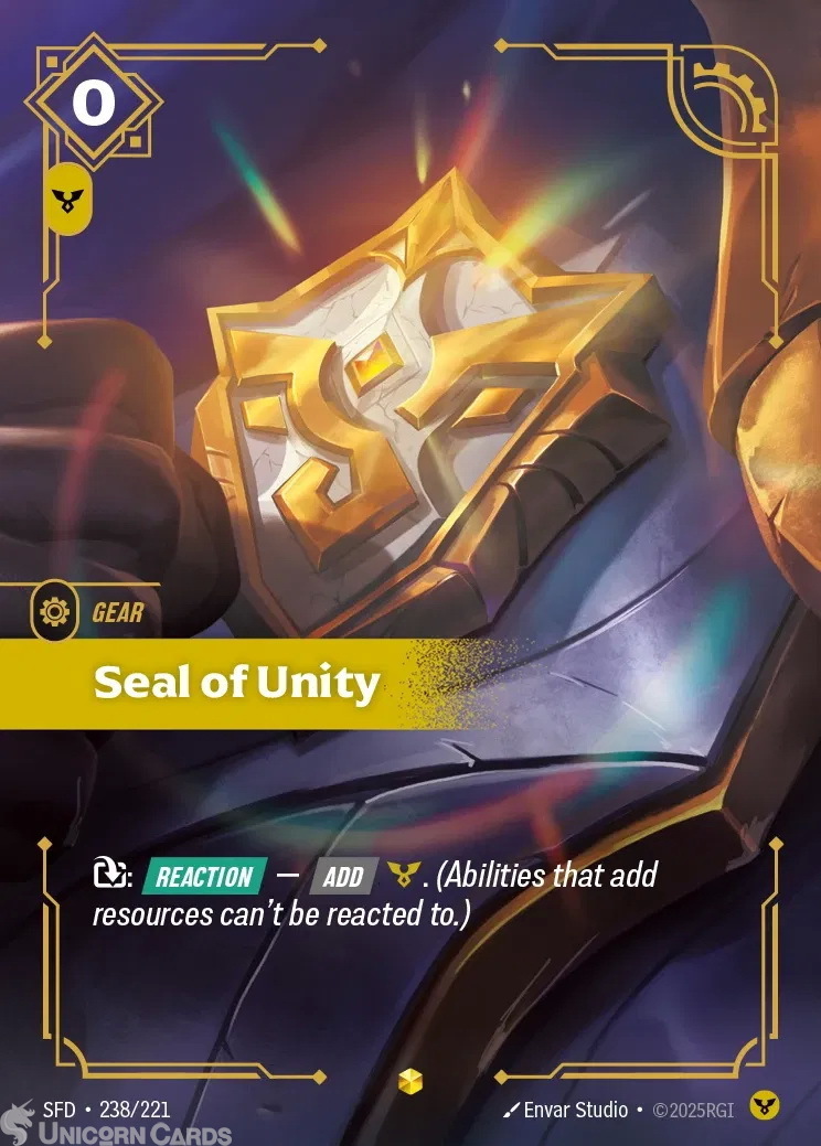 SFD-238 Seal of Unity (Overnumbered) : Showcase Foil Riftbound TCG Card : Spiritforged