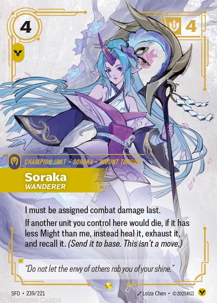 SFD-239 Soraka - Wanderer (Overnumbered) : Showcase Foil Riftbound TCG Card : Spiritforged