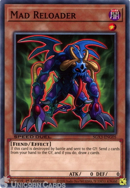 - SGX3-ENG05 Mad Reloader :: Common 1st Edition Mint YuGiOh Card