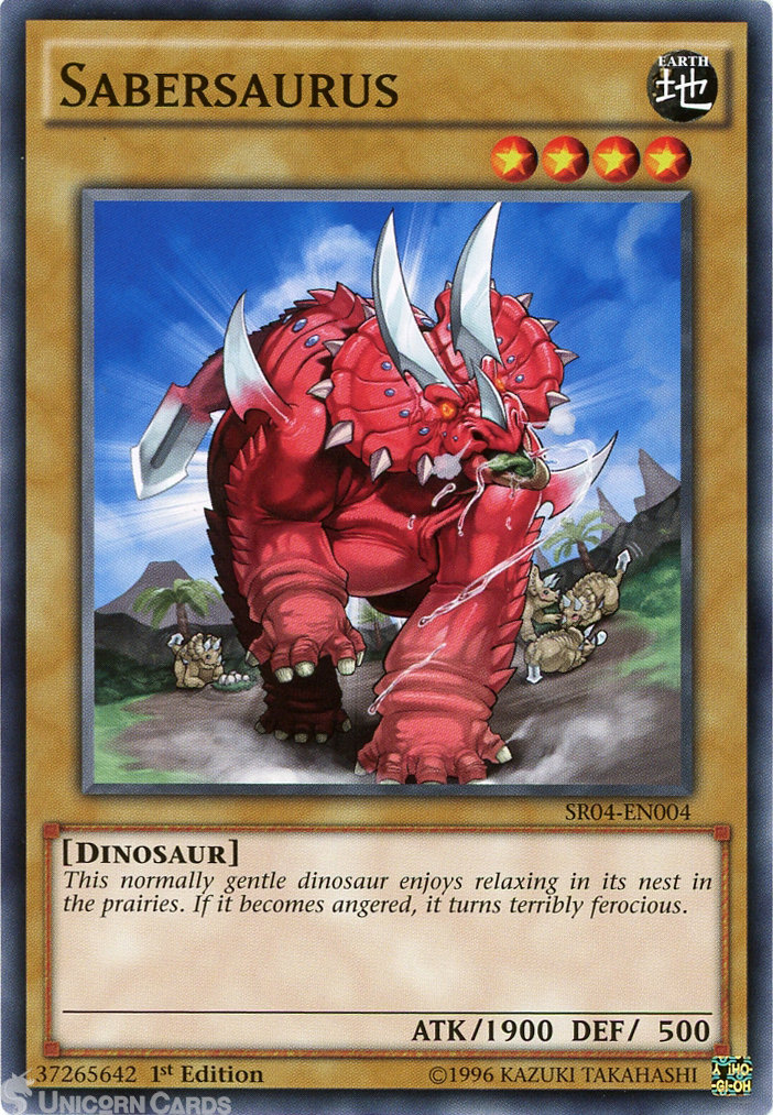 - SR04-EN004 Sabersaurus 1st Edition Mint YuGiOh Card