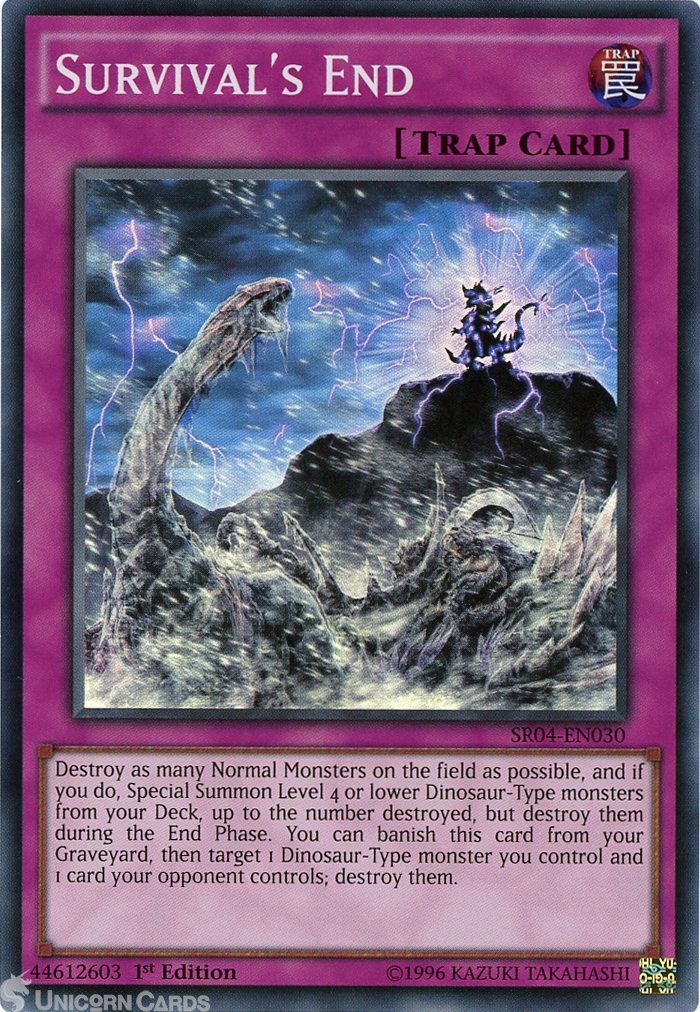 - SR04-EN030 Survival's End Super Rare 1st Edition Mint YuGiOh Card