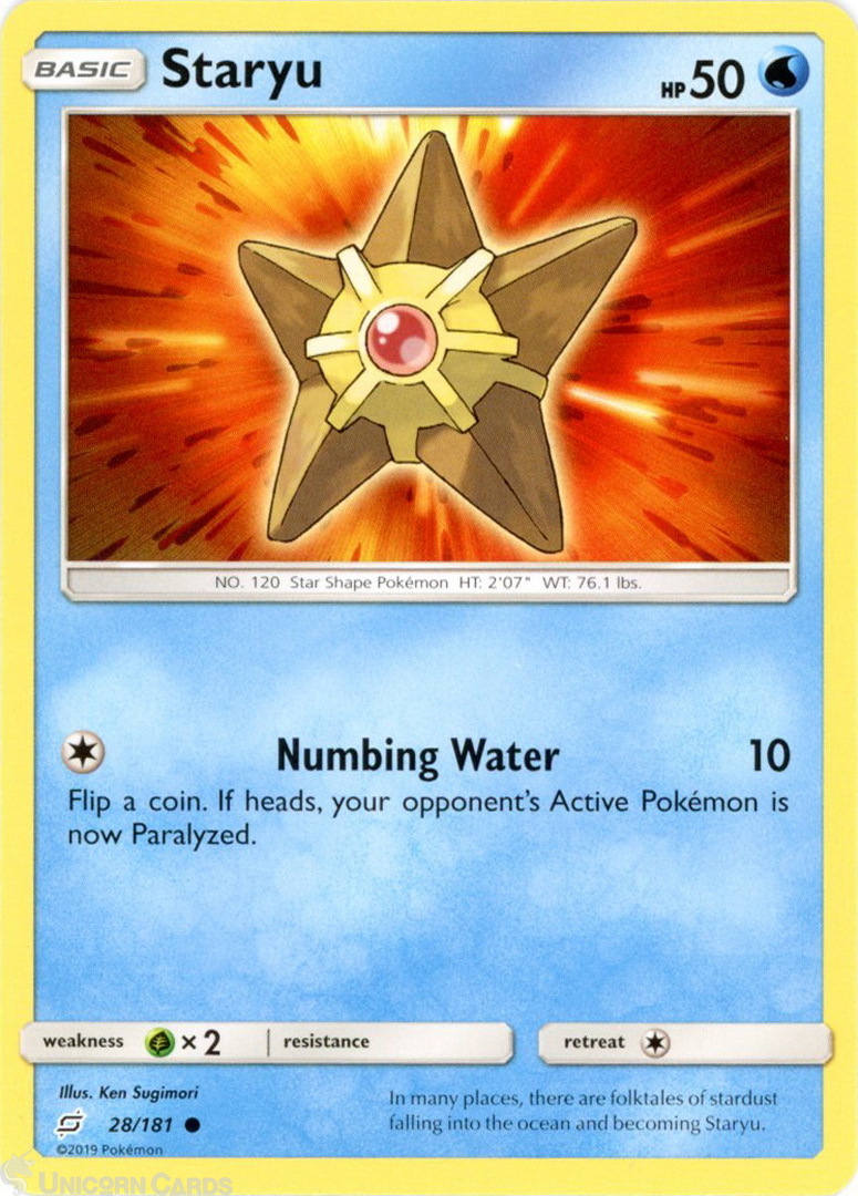 Staryu 28/181 : Common Mint/Near Mint Pokemon Card : SM09: Team Up