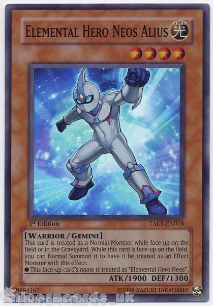 - TAEV-EN018 Elemental HERO Neos Alius Super Rare 1st Edition Mint YuGiOh Card