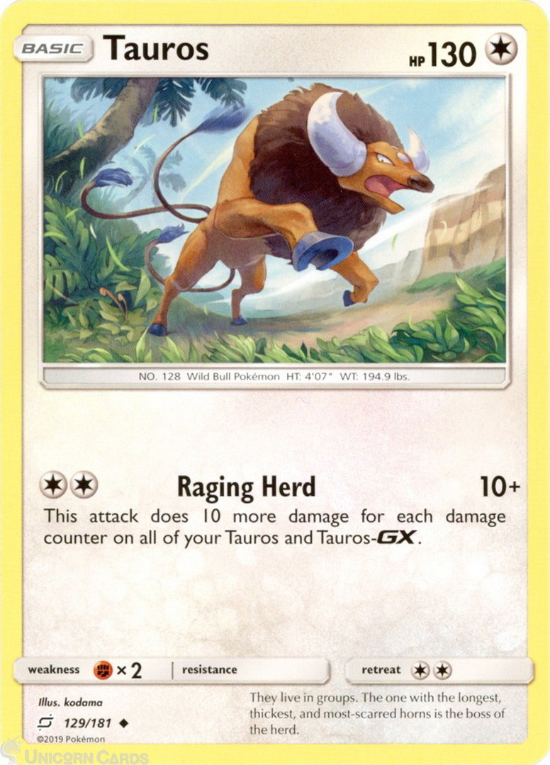 Tauros 129/181 : Uncommon Mint/Near Mint Pokemon Card : SM09: Team Up
