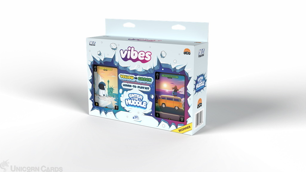 This kit includes all the pieces necessary for two new players to learn Vibes, the Pudgy Penguins Trading Card Game. These 52-card decks are designed for new players to have fun right out the box.