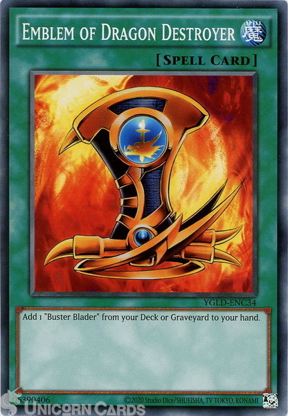 - YGLD-ENC34 Emblem of Dragon Destroyer UNL edition Mint YuGiOh Card