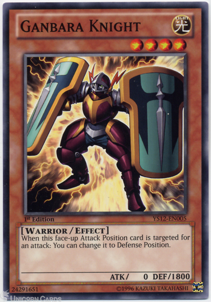 - YS12-EN005 Ganbara Knight 1st Edition Mint YuGiOh Card