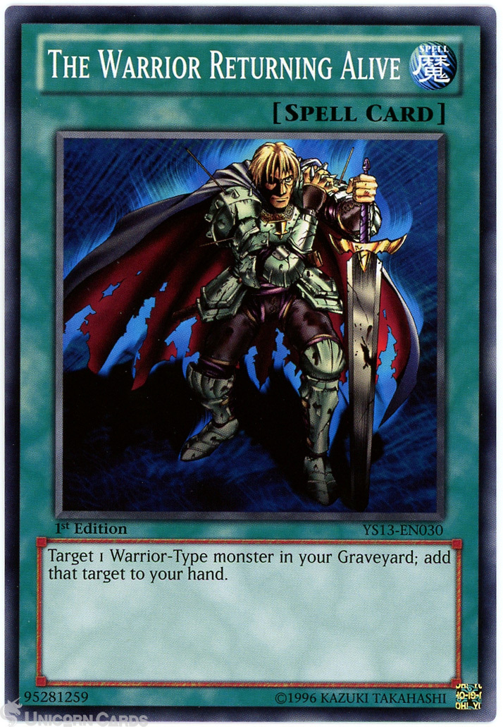 - YS13-EN030 The Warrior Returning Alive 1st Edition Mint YuGiOh Card
