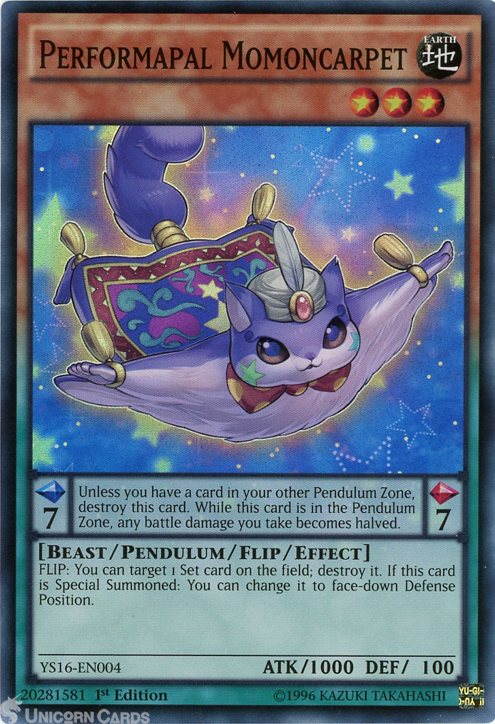 - YS16-EN004 Performapal Momoncarpet Super Rare 1st Edition Mint YuGiOh Card