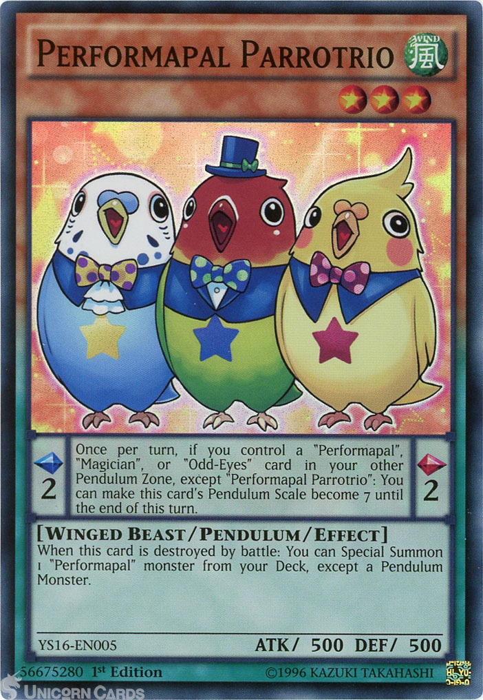 - YS16-EN005 Performapal Parrotrio Super Rare 1st Edition Mint YuGiOh Card