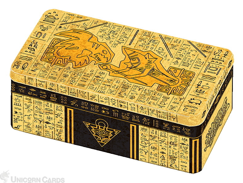 (Most Duelists never noticed, but the 2020 tins, and now the 2021 tins, have embossed/debossed sides, and rimless lids that fit flush with the tin body, allowing the tins to be stacked on top of each other to build the entire Pharaonic tablet – once all three pieces have been assembled!)