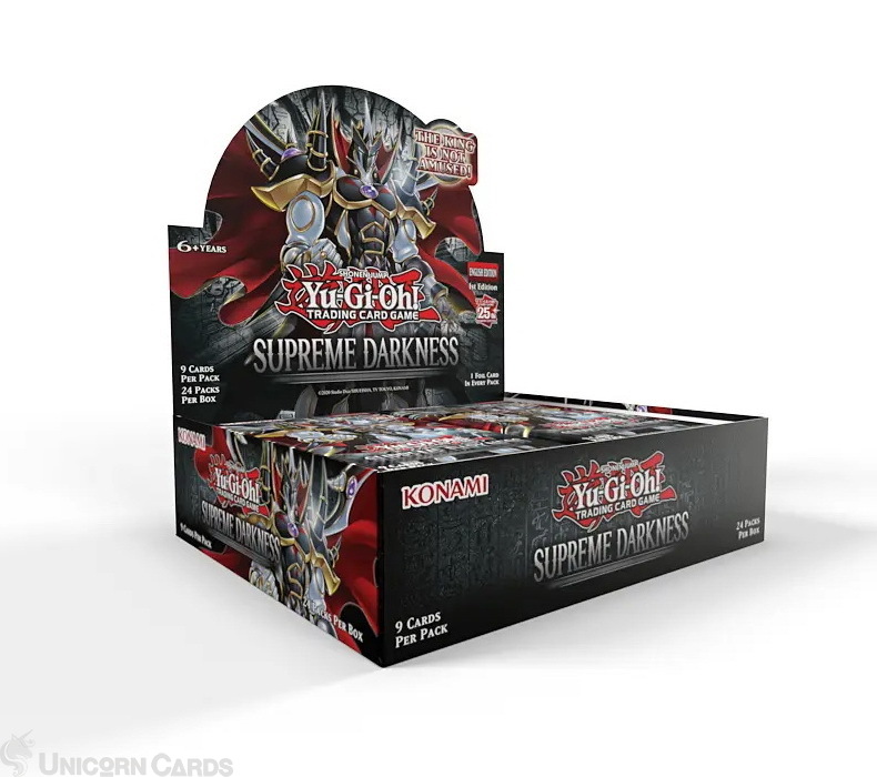 Supreme Darkness has 101 new cards in total, including a brand-new World Premiere theme that you won’t want to miss. It also continues the 25th Anniversary Celebration by including 25 Quarter Century Secret Rares, including 1 special card!