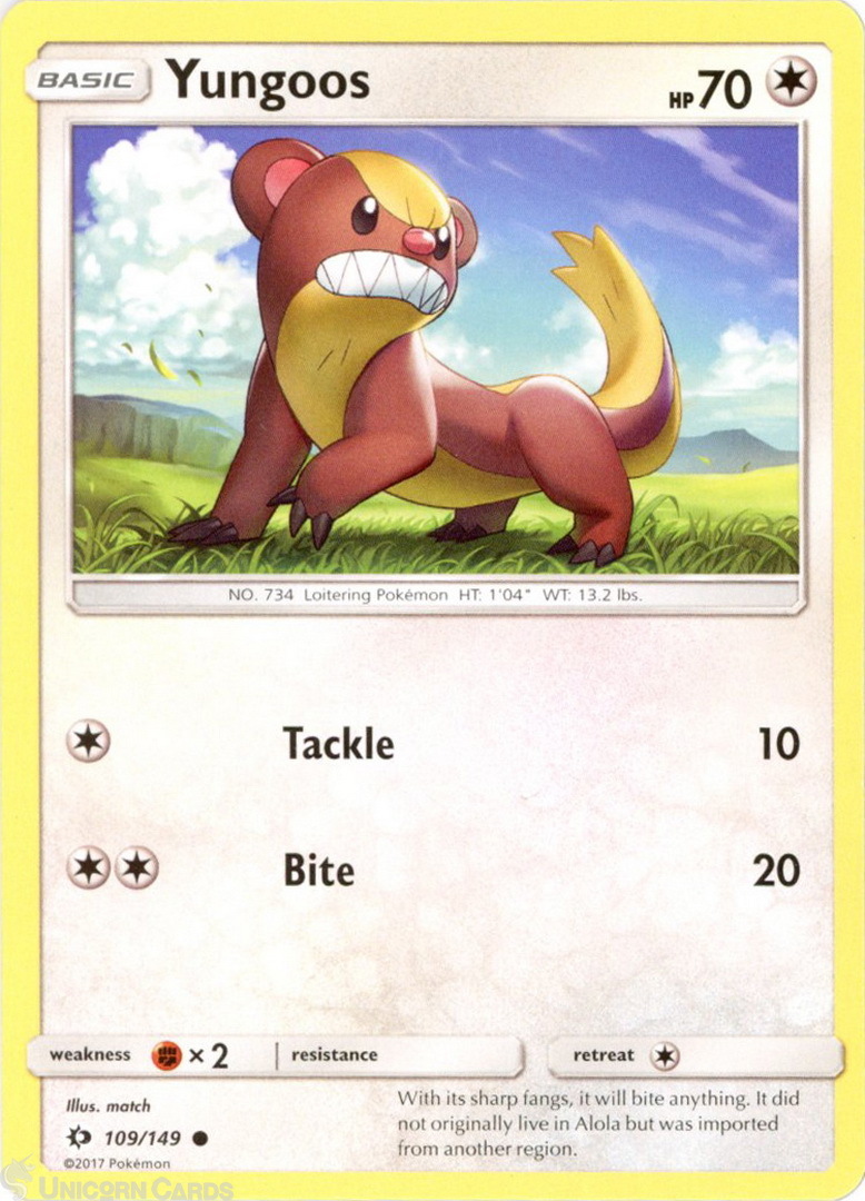 Yungoos 109/149 : Common Mint/Near Mint Pokemon Card : SM01: Sun & Moon